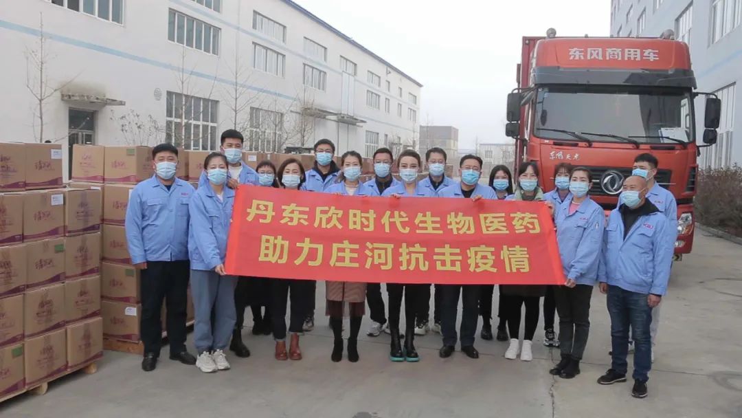 丹東欣時代生物醫藥捐贈防疫物資助力莊河抗擊疫情 -